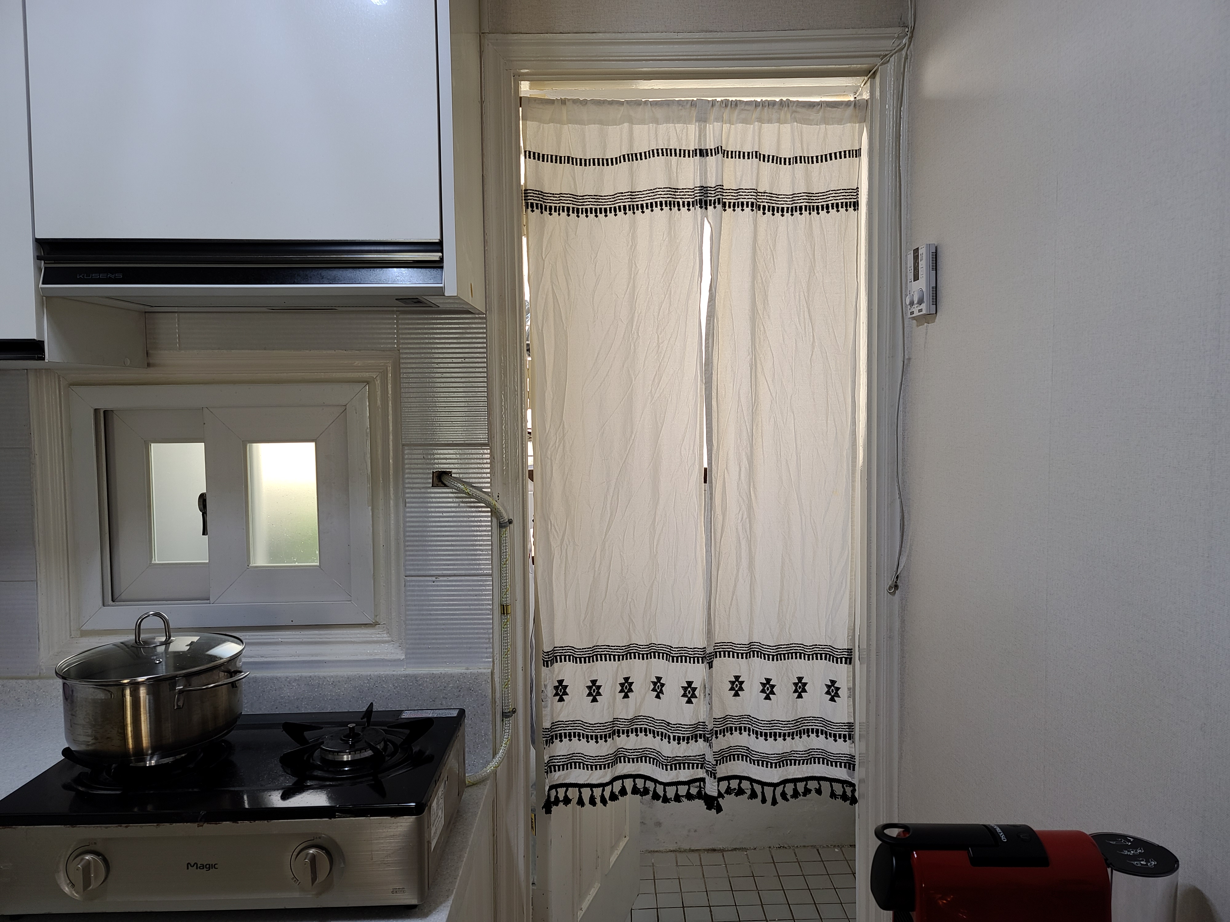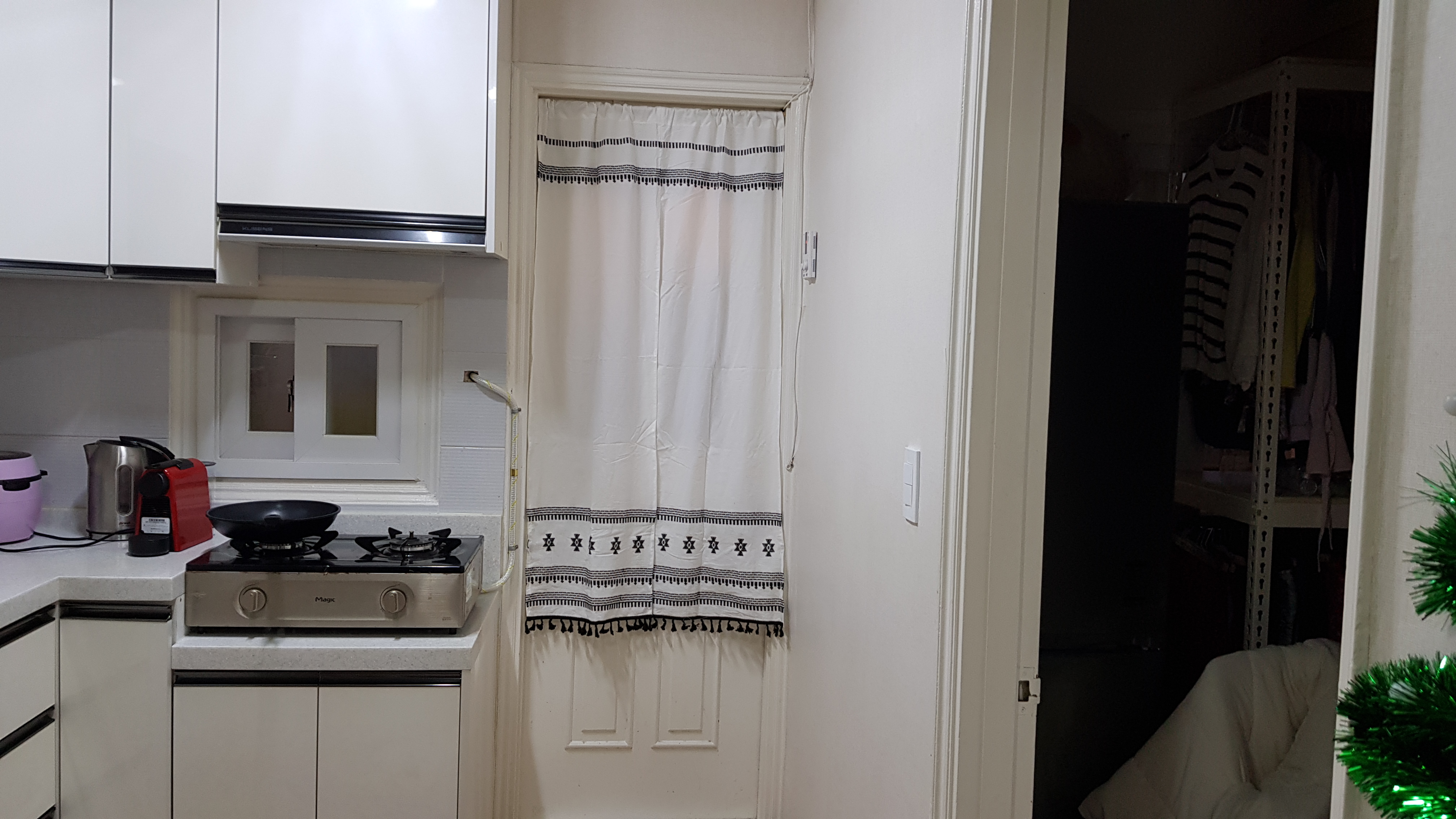 1층이라 밖이 많이 보여서 이렇게 달아놓으니 언제든 환기시키기 좋더라구요 :-)
